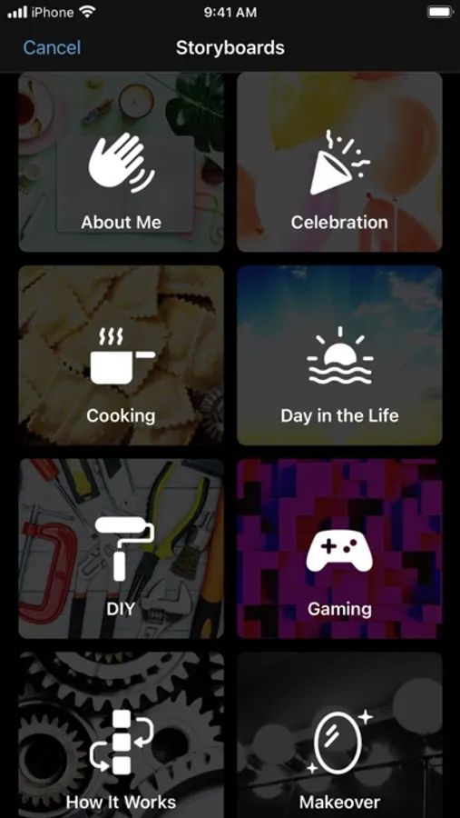 • Choose from 20 Storyboards that help you get started with popular video types