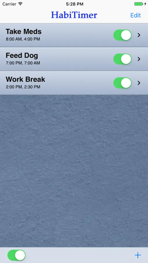 ••• PLEASE NOTE: If notifications aren't triggering, then check Settings App > Notifications > HabiTimer.