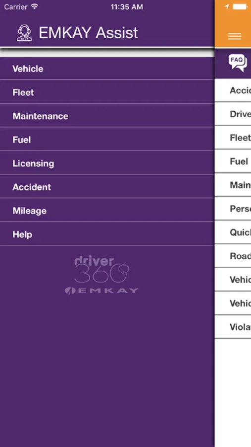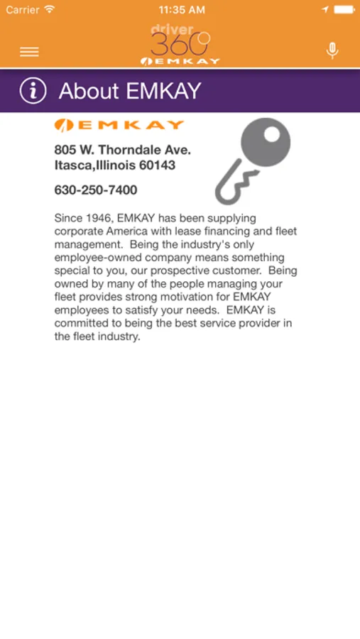 Driver 360 provided by EMKAY, Inc. is the fleet industry’s premier driver focused fleet management iPhone application. Driver 360 enables EMKAY fleet drivers to perform necessary fleet functions and view valuable information regarding their fleet vehicle right from their iPhone.