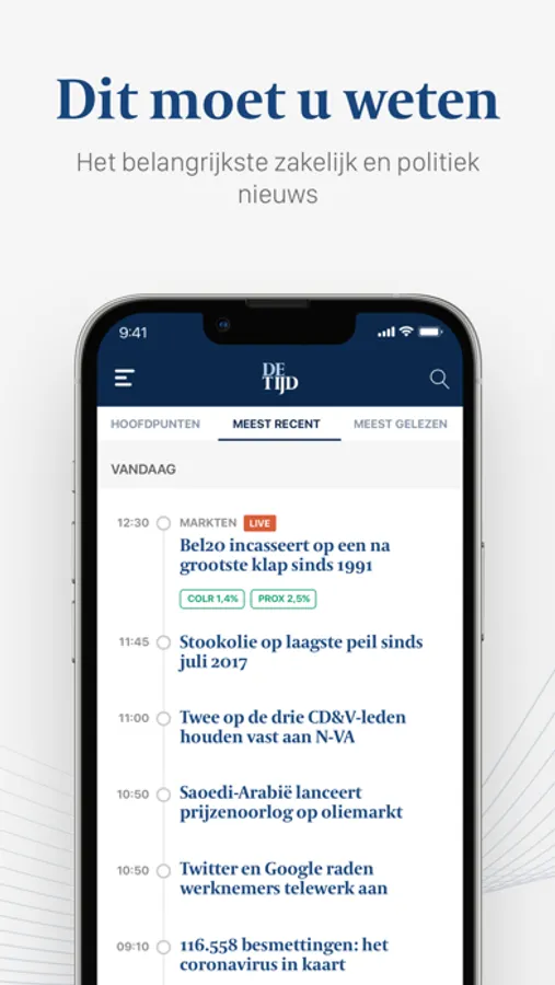De Tijd is dé referentie voor betrouwbaar politiek, economisch en zakelijk nieuws. Zorg dat u altijd als eerste op de hoogte bent van het belangrijkste nieuws dankzij onze app.
