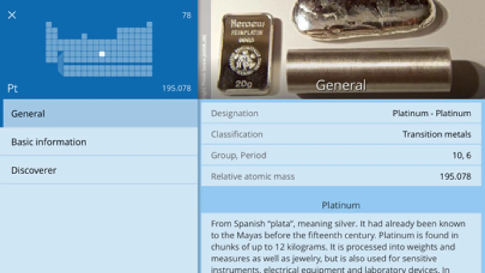 Our PSE App is the ultimate tool for every friend of chemistry - whether pupil or teacher, student or professor, amateur or expert, hobbyist or technician. Our app is a must-have of digital periodic tables. Get informed with our mobile reference work, any time, with ease, offline and in detail.