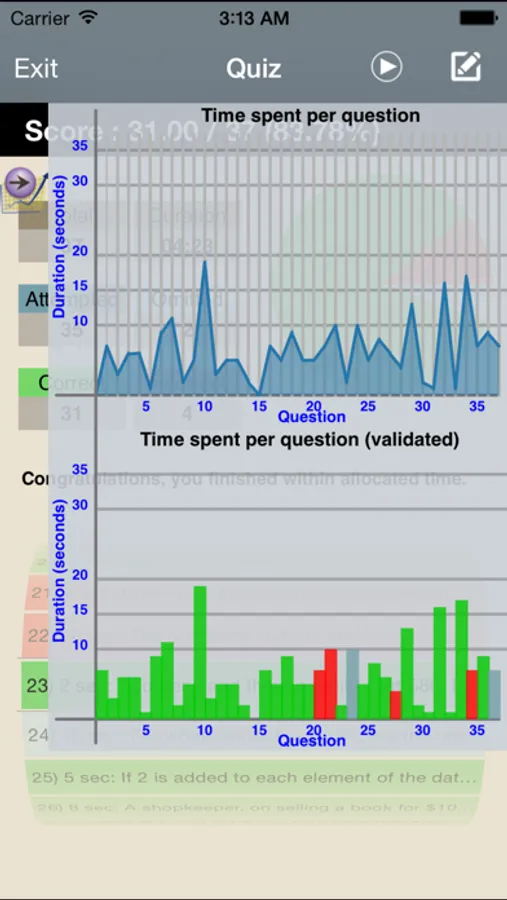 - Provide time spent on each question.