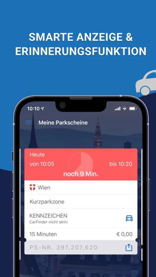 • Erinnerungsfunktion vor Ablauf des Parkscheins