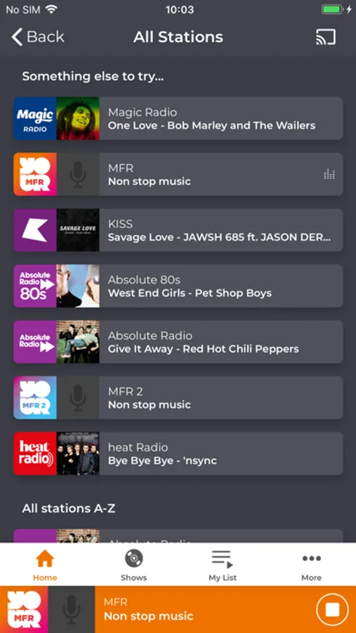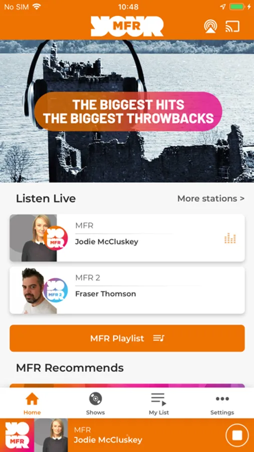 The MFR Radio app features include: