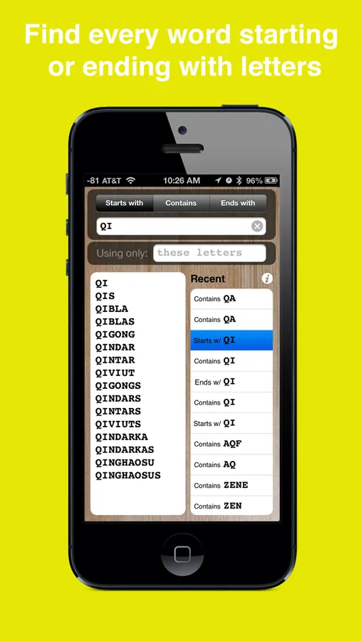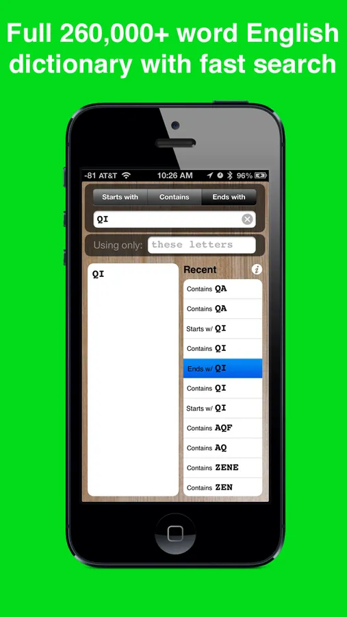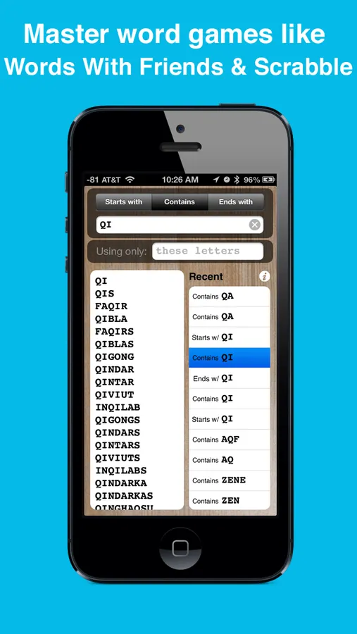 Enabler is a Dictionary / Trainer for word games such as Words With Friends, Scrabble, Hanging With Friends, Letterpress, etc.
