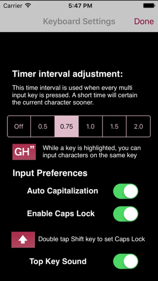 - “Other” key to call another keyboard with major extended characters (multi input keys)
