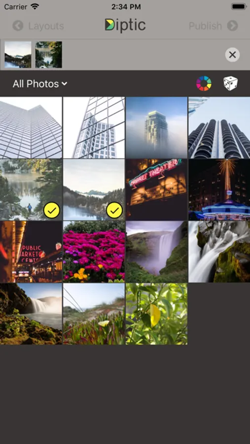 • Create Diptics with photos or videos from your library, Instagram, Dropbox, Facebook or Flickr, or take a photo on the spot with the camera