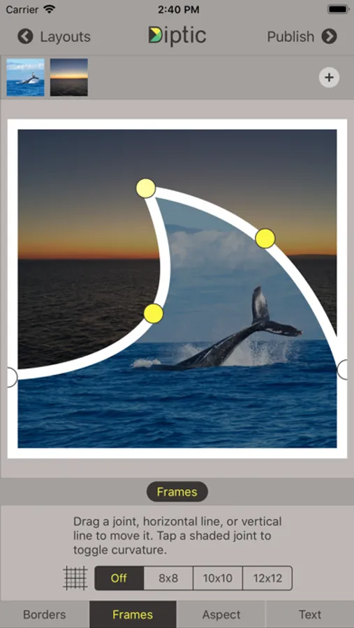 • Customize your layouts to better fit your video or images by sliding interior frame lines or moving joints along the line