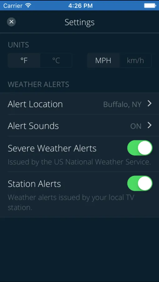 • Severe weather alerts from the National Weather Service