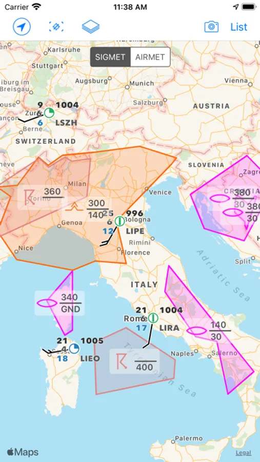 - SIGMETs (requires 'Captain' subscription)