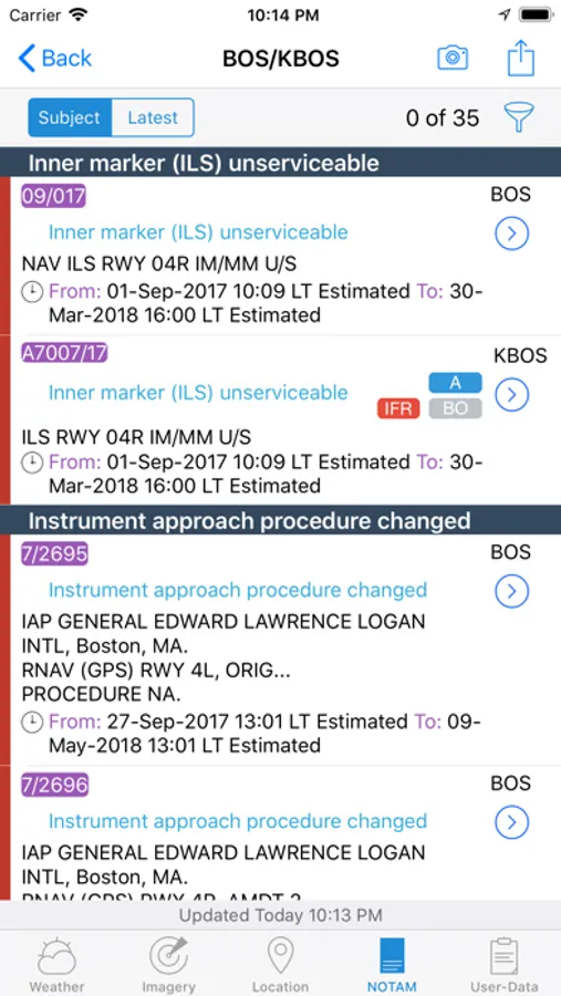 METAR alert notifications** is another new and helpful feature to stay up-to-date. Define multiple alerts for each station with criteria like: flight rule (US NOAA), wind speed, temperature, pressure, present weather, visibility etc. Notifications will be sent to your device if the criteria is met (e.g., when flight rule becomes IFR).