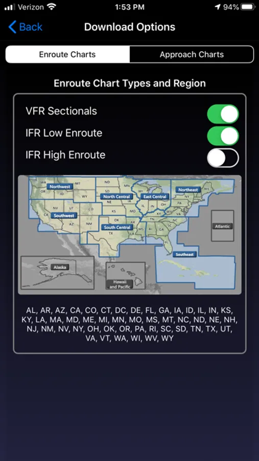 Includes VFR Sectionals, IFR Enroute Low and High, TACs, Flyway, Helicopter, Grand Canyon, and IFR Area charts plus APDs (geo-referenced), IAPs, etc