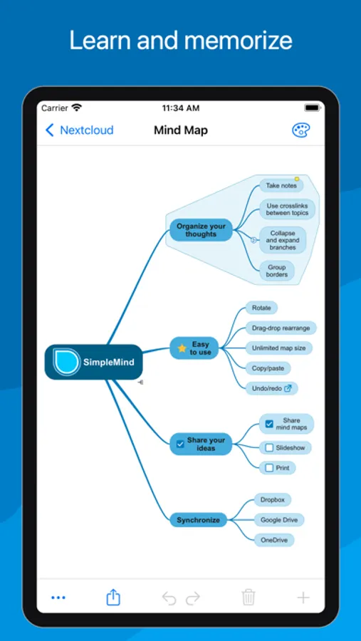 Mind mapping helps you organize your thoughts, remember information and generate new ideas. We've created a beautiful, intuitive app, so you can mind map wherever you are and whenever you want.
