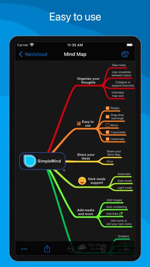○ sync mind maps with your iPads and iPhones