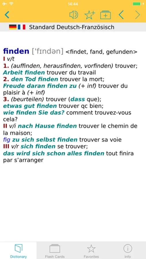 365,000 headwords, phrases and translations. French - German. German - French. Use offline – even abroad. The ideal dictionary app for work, study, travel and everyday situations. Available with free vocabulary trainer. Millions of users can't be wrong! From the No. 1 dictionary publisher.*