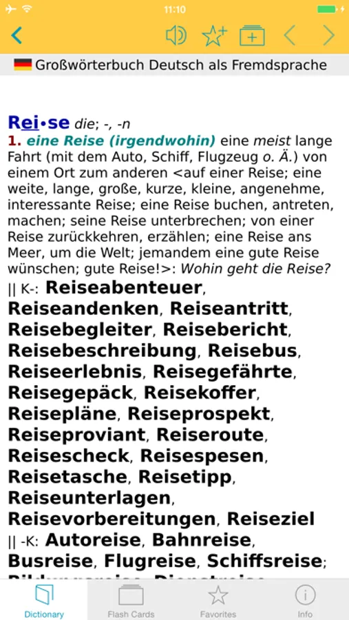 No internet connection required. The German dictionary app also works in flight mode and abroad without roaming fees.