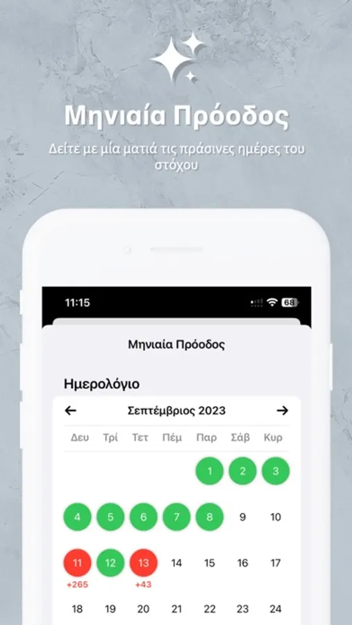 υπάρχει δυνατότητα προβολής και επεξεργασίας του ιστορικού,παρακολούθηση προόδου επίτευξης στόχου αλλά και γραφικές παραστάσεις ανάλυσης της κατανάλωσης σας και συγχρονισμός με την Υγεία.