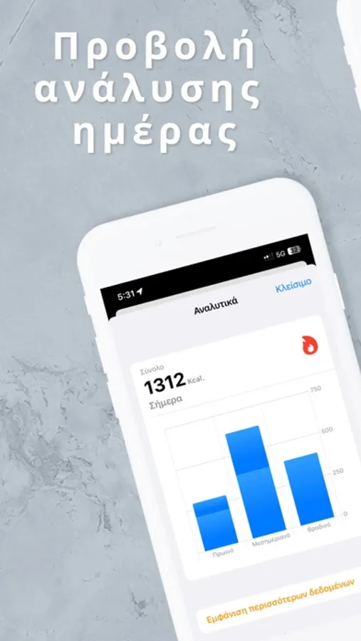 •Προβολή γραφικών παραστάσεων ανάλυσης των τροφών που έχετε καταναλώσει.
