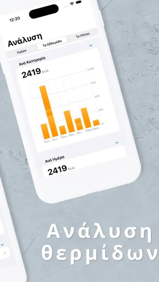 •Ημερήσια ανάλυση των θερμίδων ανά Πρωινό, Μεσημεριανό, Βραδινό, Σνακ , Δεκατιανό αλλά και των τροφίμων που έχουν καταναλωθεί.
