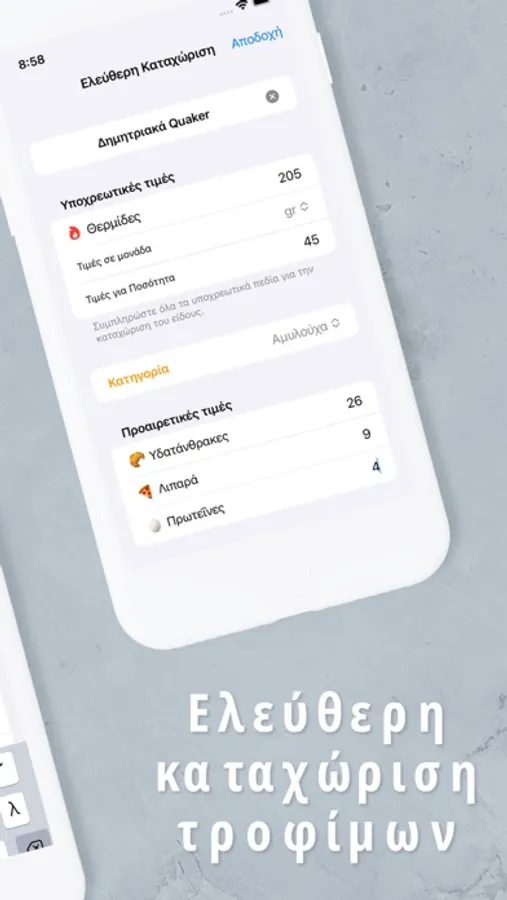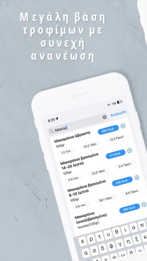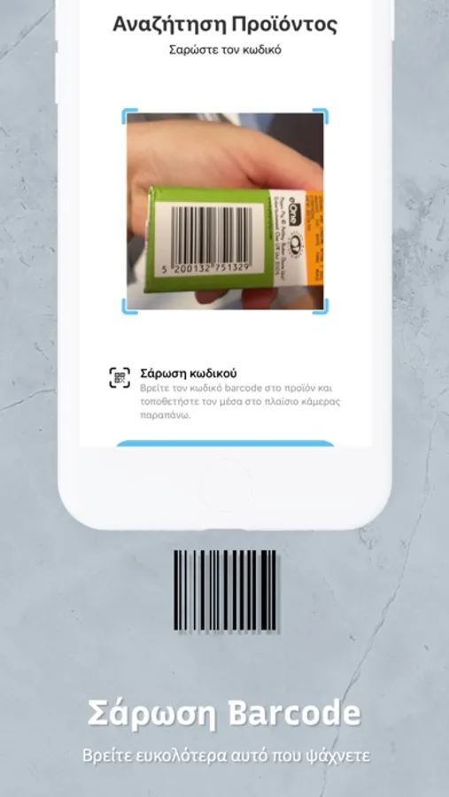 •Αναζήτησή τροφίμου με σάρωση κωδικών Barcode.