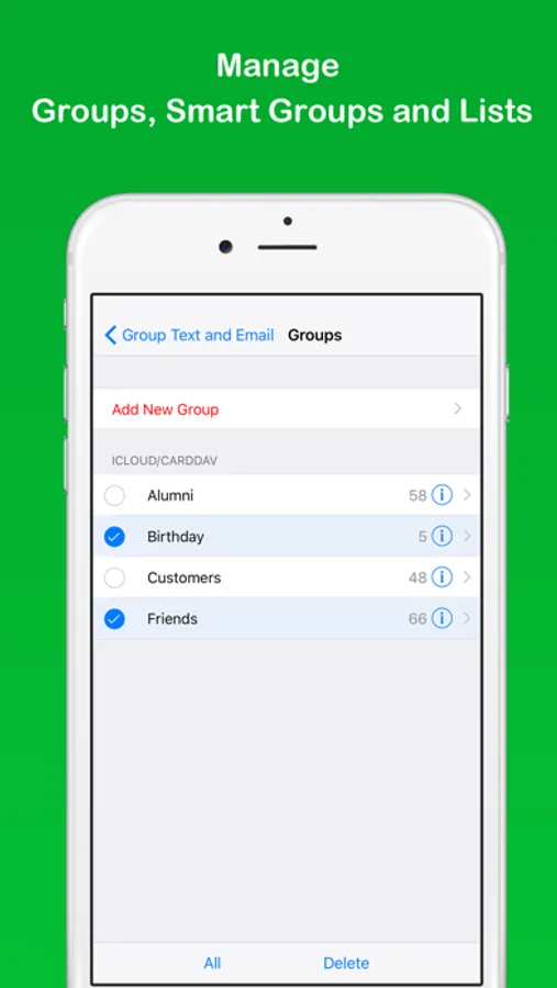 Group SMS and Email helps you to manage groups in your address book directly from your iPhone. With just a ‘Tap’, you can SMS / Email to all your group members at one time.