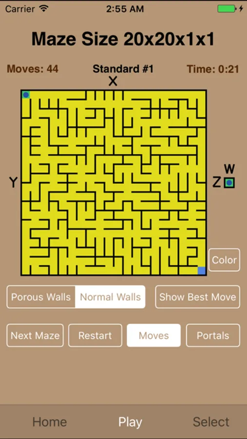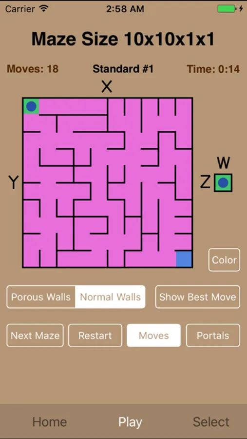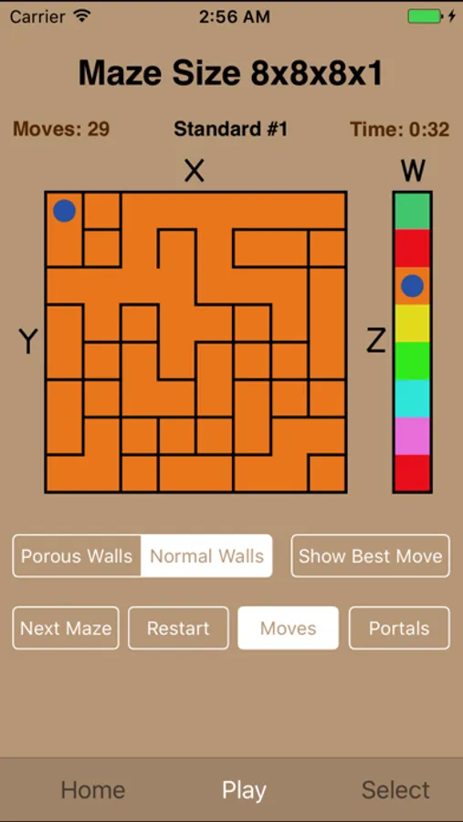 A free multidimensional maze game for the both iPhone and iPad. Many different sizes - Squares, Cubes, 4-dimensional Tesseracts, and mazes with any size sides like 5x2x7x3 or a double stacked square - 10x10x2.