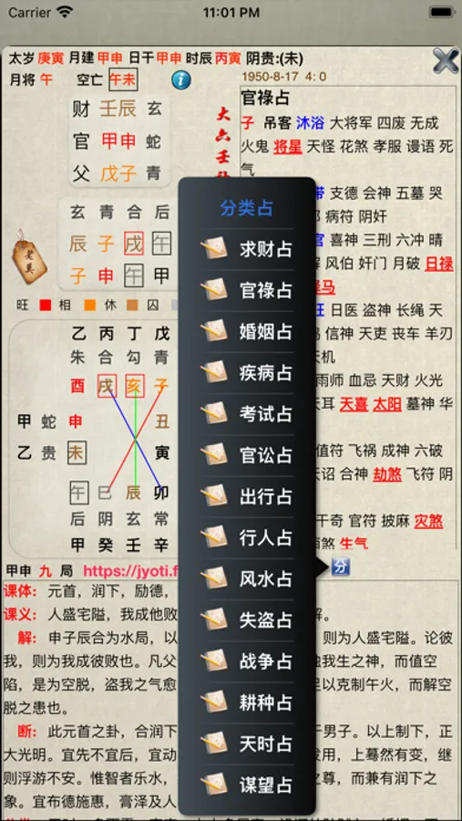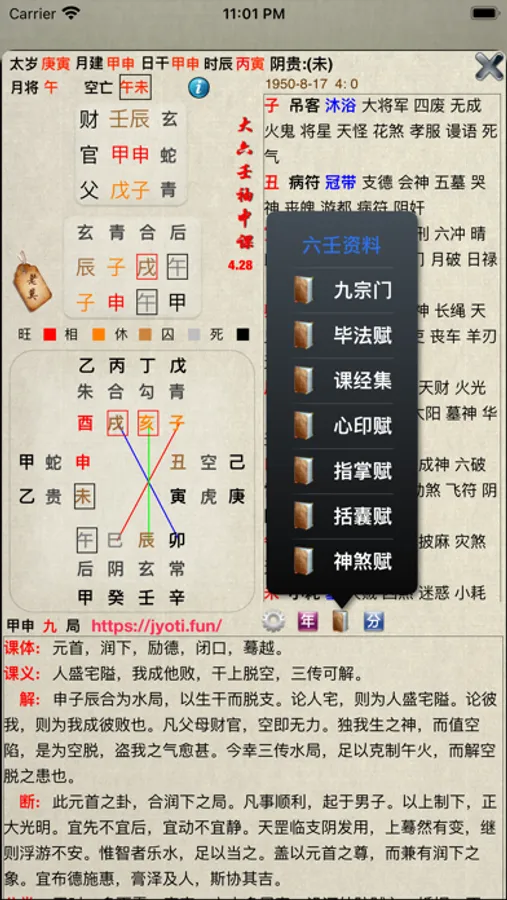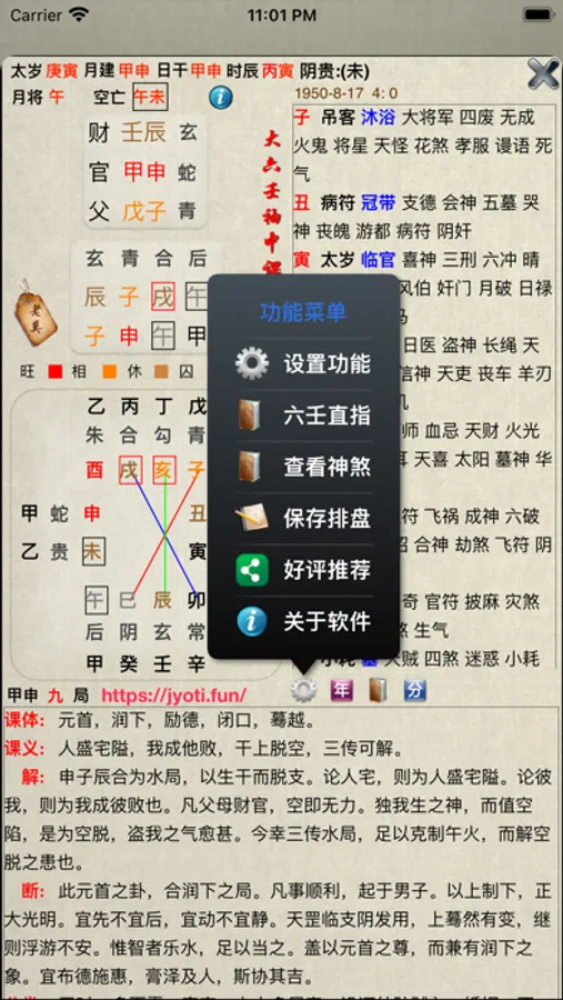 大六壬的起课方式较其它术数学更为繁琐,尤其是发三传的“九宗门”法,而它的局数也比奇门遁甲更多。对于广大初学者,甚至是学六壬多年的易友们来说,如何快速起课都是一个短时间内无法克服的困难。"大六壬袖中课"正是为解决这个问题而研发的 iPhone 软件。