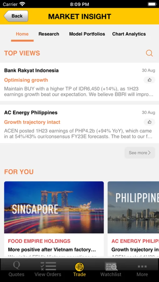 • Market Insight features research analysis and market intelligence on Singapore, Malaysia and Hong Kong-listed equities, as well as consensus buy, sell and hold calls, aggregated from brokers who cover that counter.