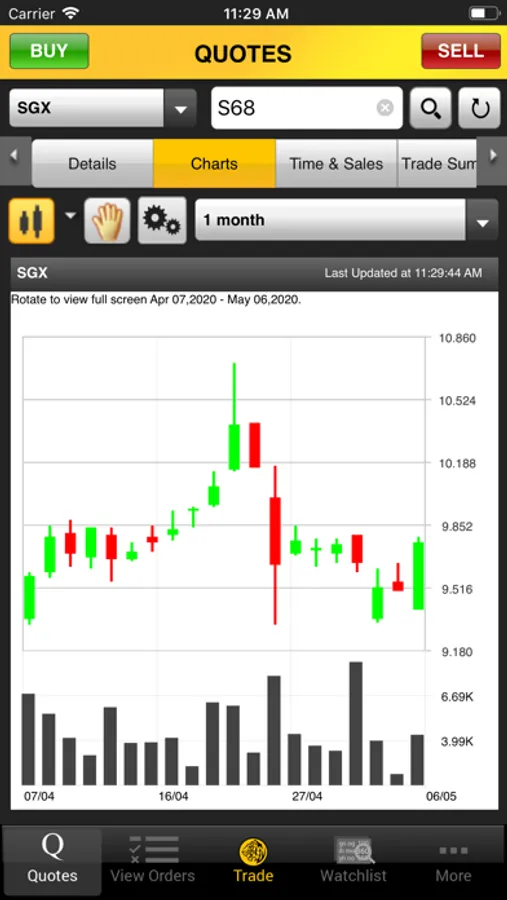 • Analyse price movements of stocks in the Singapore market and foreign markets. Choose from a variety of chart types such as Candlestick, Open-High-Low-Close (OHLC), Area and Line