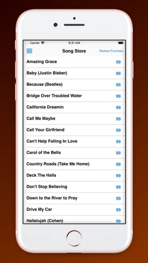 The 50 additional songs available through in-app purchase include "Hallelujah", "Amazing Grace", “Sound of Silence”, “Take Me Home, Country Roads”, "Shallow", "Seven Bridges Road”, “Let it Be”, and many more. Detailed song info is at https://singharmonies.com/.