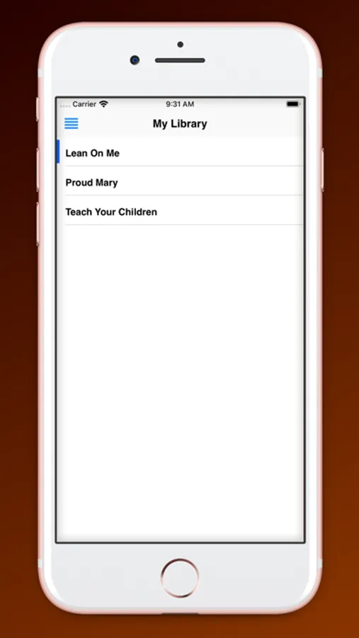 • Tap the menu icon to navigate to other areas of the app. Tap My Library to view and select any the songs you can currently play. Tap Song Store to see available songs and to purchase more songs. Tap More Info for instructions and support.