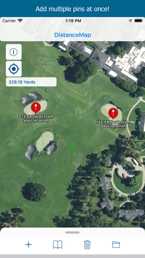 ** Add multiple pins at once to get distances to hazards, water, or any landmark!