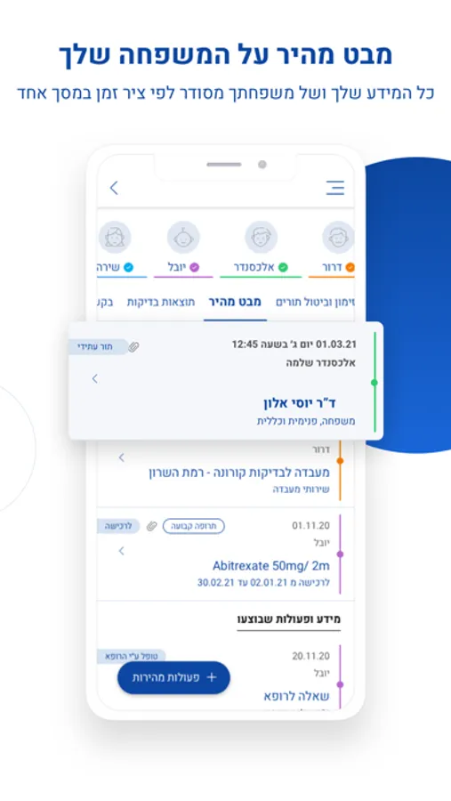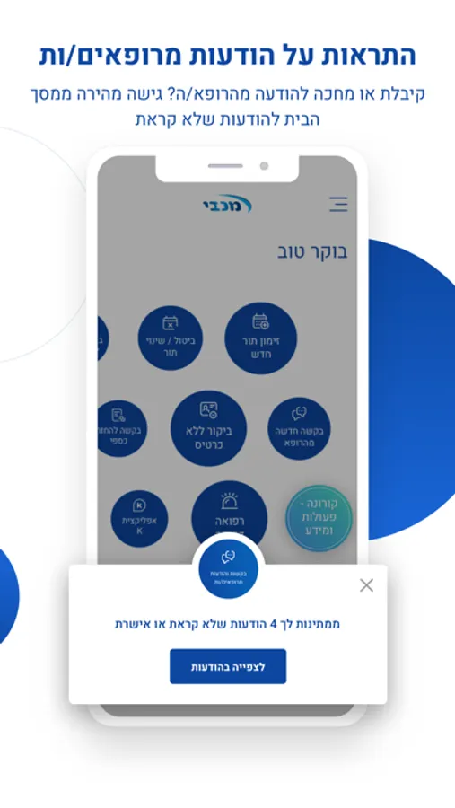 האפליקציה החדשנית מאפשרת התאמה אישית של מסך הבית וכוללת מגוון רב של שירותים חדשים כמו סיכום ביקור, עריכת תור, קבלת סיסמה ראשונה, הזדהות בקוד חד פעמי