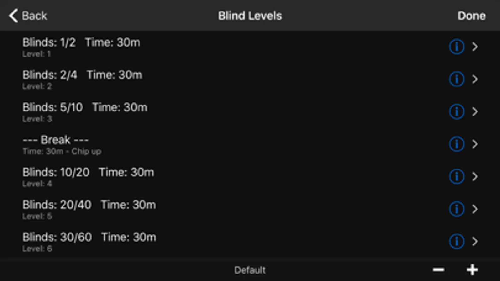 Add a touch of class to your next poker tournament. This simple poker clock allows you to easily setup your blind structure and worry more about your cards over keeping track of the blinds.
