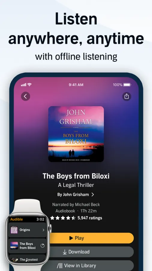 • Offline listening - stream or download directly to enjoy Audible with or without WiFi