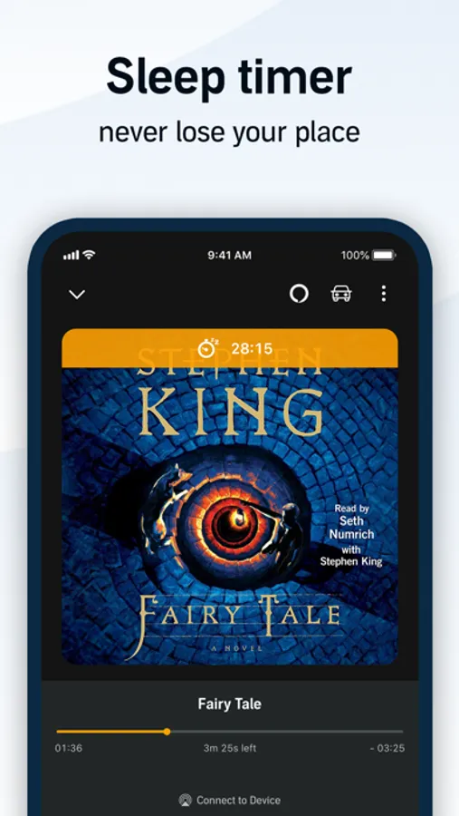 • Sleep Timer - listening before bed? Set a timer before you fall asleep for when the book should stop playing