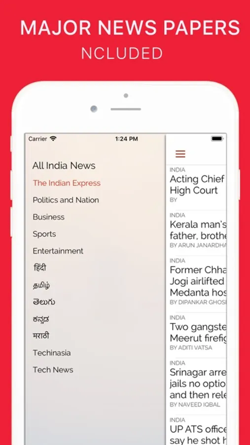 Finally! One single universal app for both iPhone and iPad covering all major newspaper from India in English as well as regional languages: Hindi, Tamil, Telugu, Kannada, Malayalam, Marathi, etc