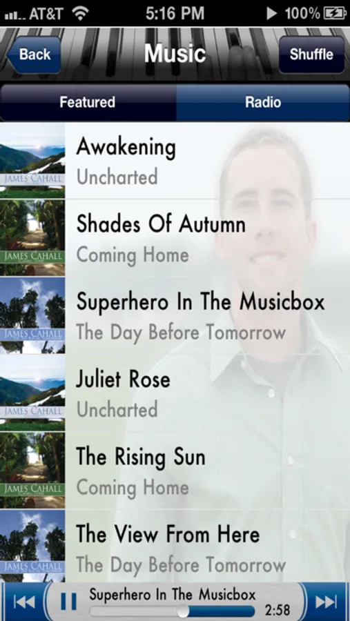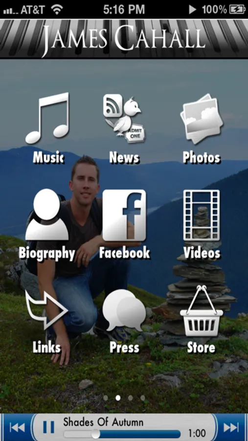 New Age Solo Pianist James Cahall's FREE Official iPhone/iPad Application featuring music, news, upcoming performances, photos, videos & more! Stay connected with all the latest updates from James on your iPhone and/or iPad.