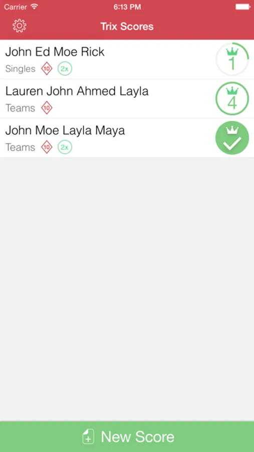Trix Scores calculates your Trix game scores for you without going through the hassle of multiplying, adding and subtracting points. All you need to do is select your cards and your scores are calculated! Trix Scores lets you:
