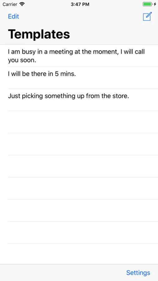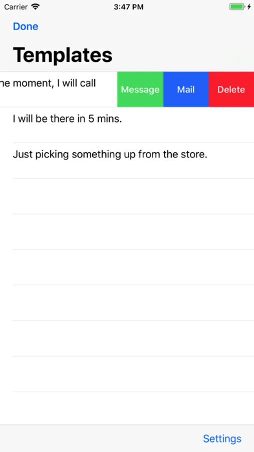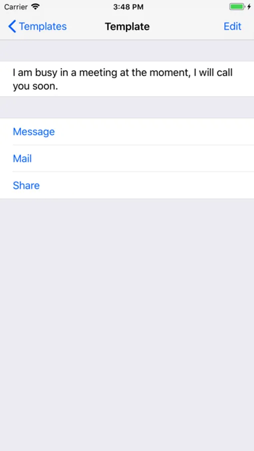 Message Templates is a simple and intuitive application that let's you save small snippets of text, that you can send (and resend) via Messages and Mail.