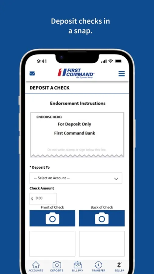 • Mobile check deposit: simply take a photo of checks to deposit them