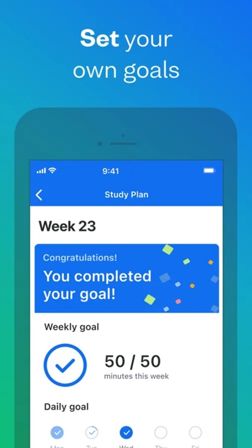 We’re serious. We organize your learning time for you with a personalized Study Plan. Simply tell us when you want to study and for how long, and we’ll send you notifications to keep you on track.