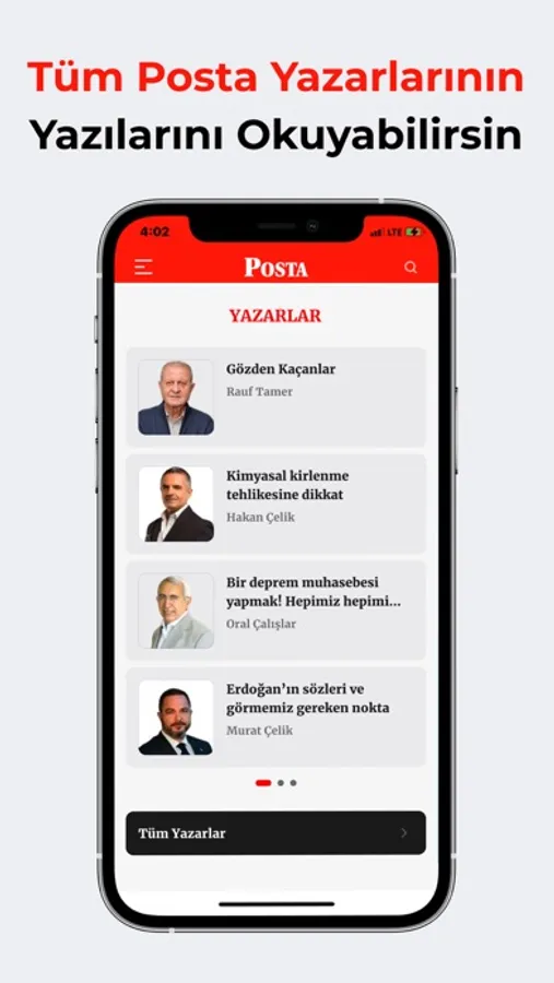 Rauf Tamer’den Murat Çelik'e Aşk Doktoru Mehmet Coşkundeniz’den Oral Çalışlar'a kadar Posta Gazetesi'nin ünlü yazarlarını ücretsiz okuyabilirsiniz.