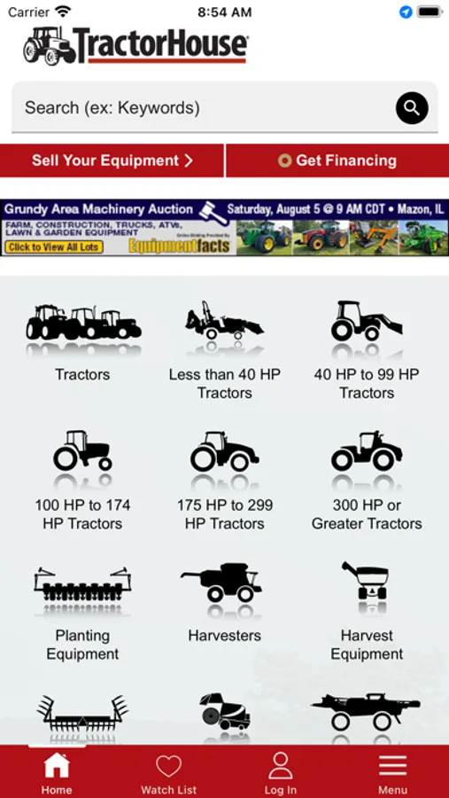 - Browse and search equipment up for auction