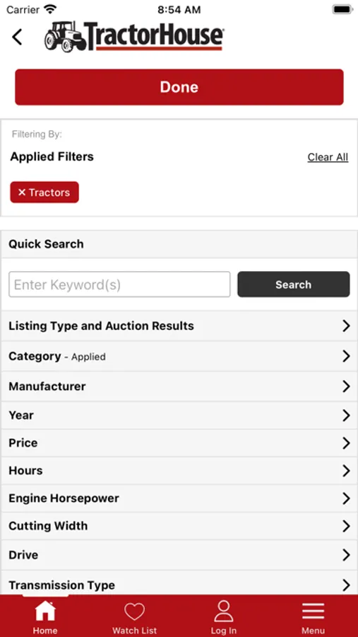 - Browse farm equipment based on category, make, or model