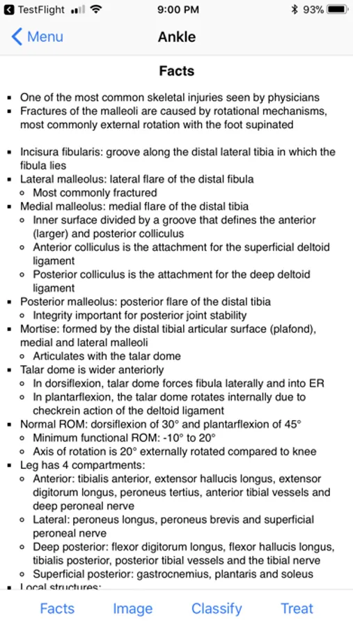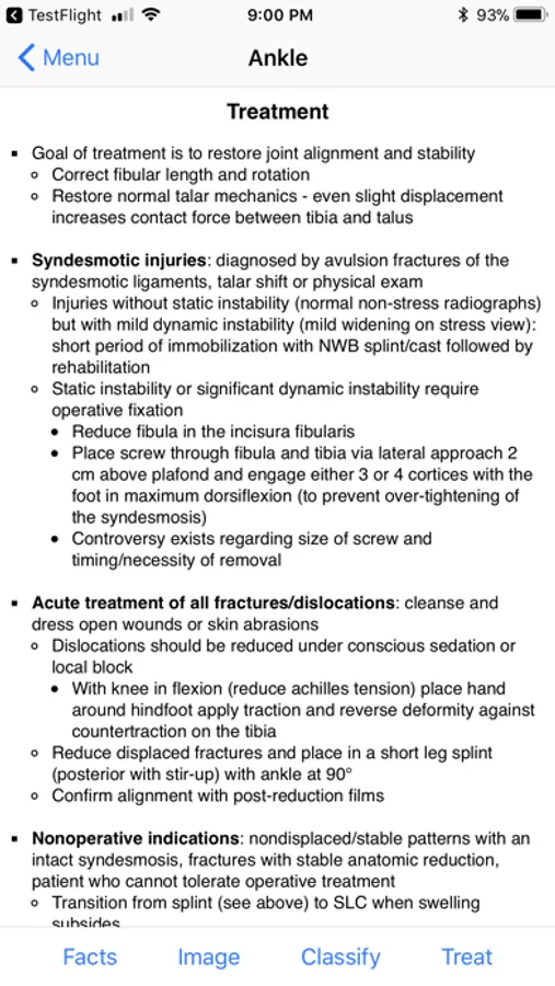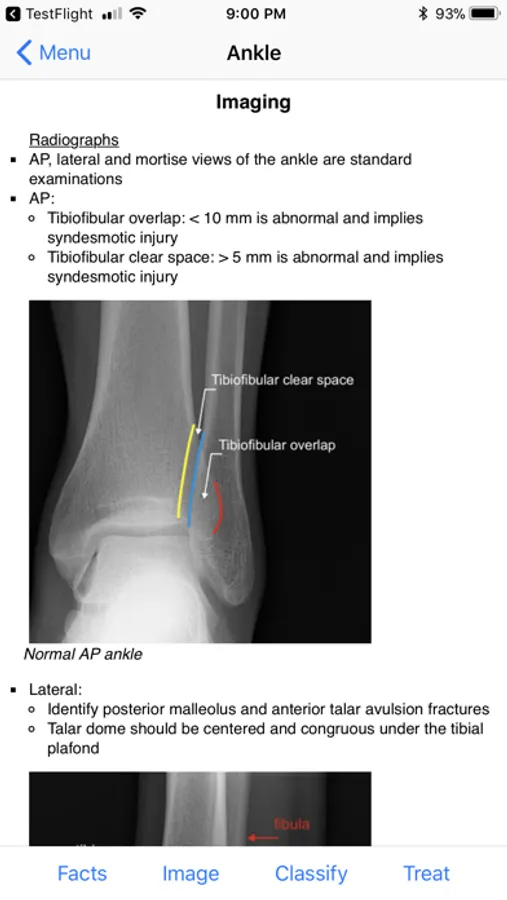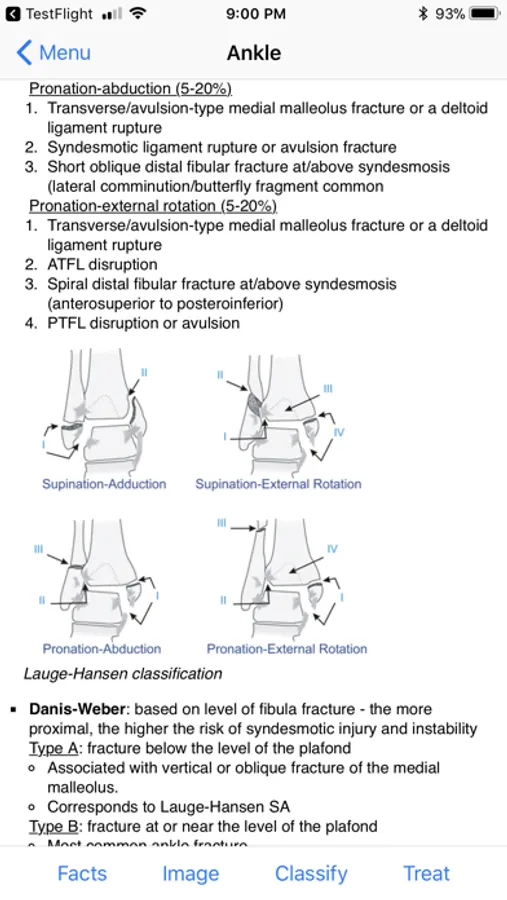 Simply select the bone or joint you’re interested in from the main menu and navigate between the four sections with the buttons on the bottom of the screen. Return to the main menu by pressing the left arrow in the title bar. There's never been a simpler, more mobile skeletal trauma reference!