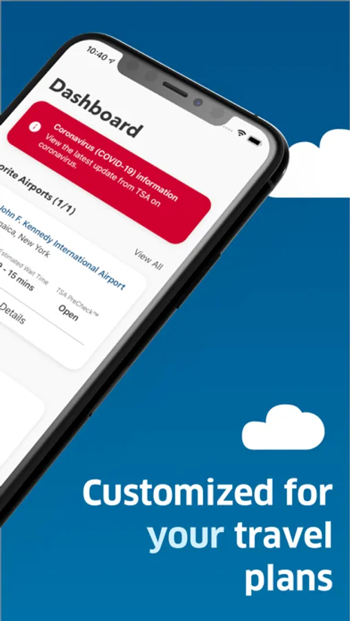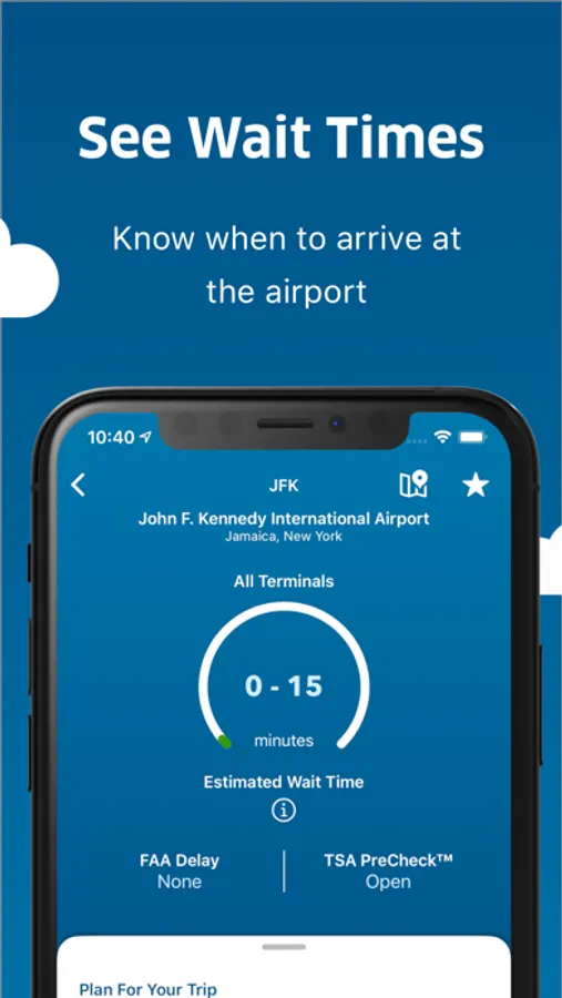 + Add your own TSA security checkpoints wait time for others to see (NOTE: You must be at the airport in order to report wait times).