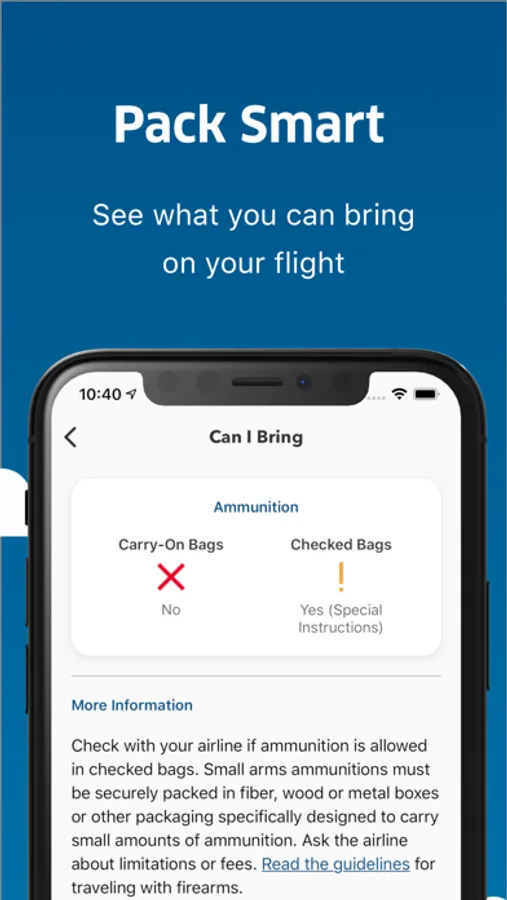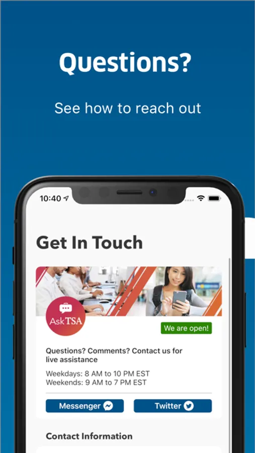 + Request live assistance from TSA through the AskTSA social media integration.