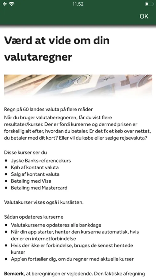 Med Jyske Banks valutaregner kan du nemt og hurtigt omregne ca. 60 landes valuta. Du kan også bruge app'en, selvom du ikke er kunde i Jyske Bank.