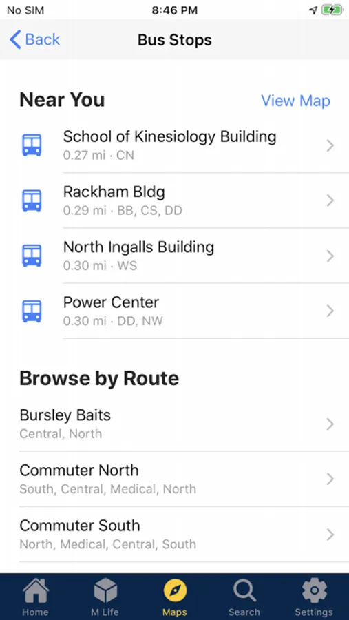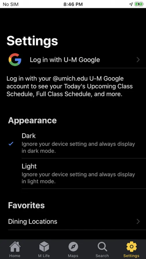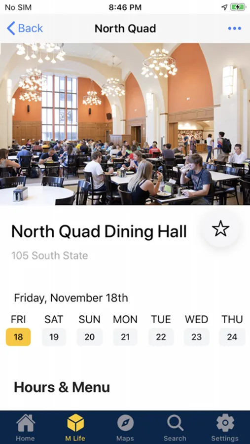 The Michigan App provides in-app messages and reminders related to academic life, personalized class schedule information, search based on places (campus buildings) and people (faculty, staff and students), location-based content including bus stops, parking locations and dining halls, and featured university events.